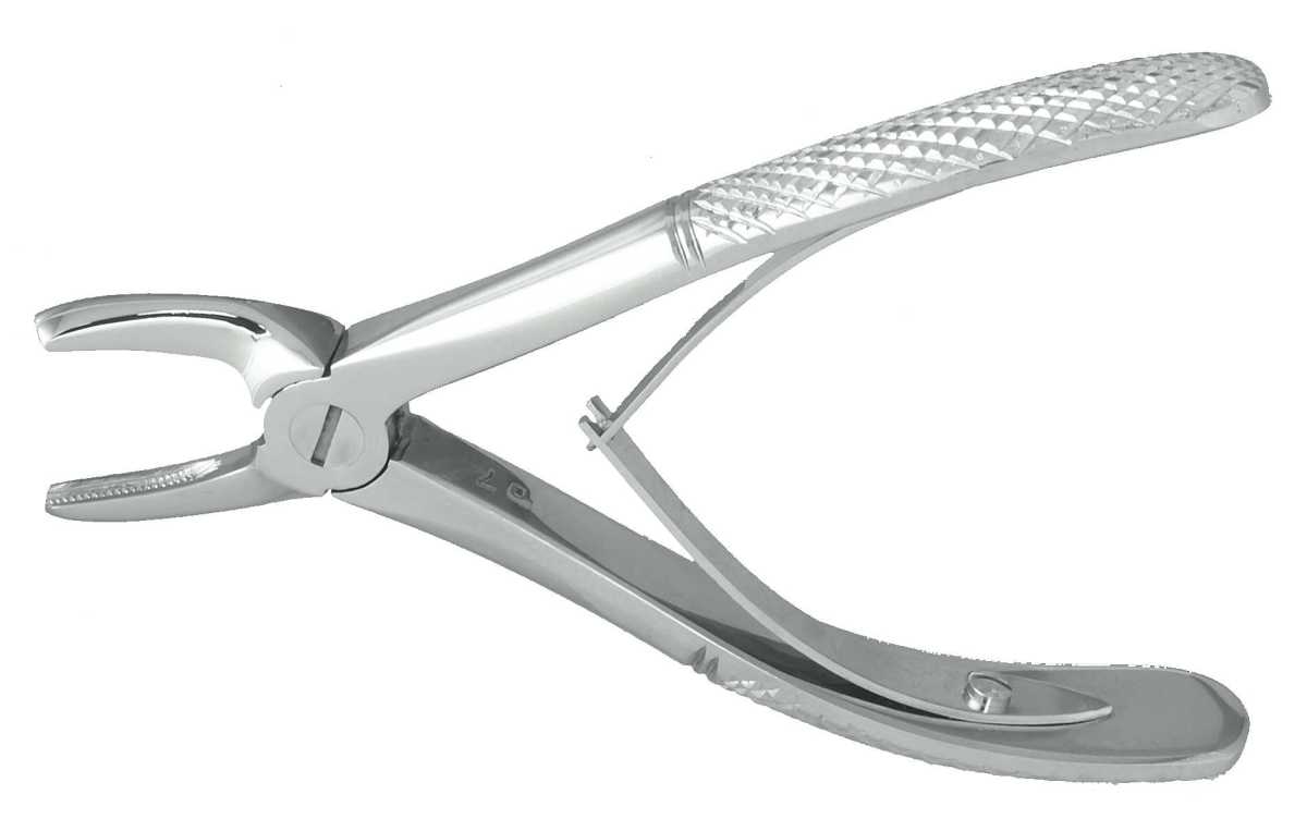 Deep gripping English pattern forceps feature indented and tapered beaks designed for easier penetration to the root structure and are especially useful for fractured or decayed teeth, Lower Bucuspids deep gripping