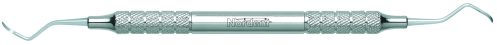 Combines a long-reach shank and a thin curette blade that is pointed like a scaler to provide easy adaptation to both supra and sub-gingival areas and excellent interproximal access. The mirror image tips have a 0.8 mm blade width set on 1 mm terminal shanks with a 12 mm reach. Featuring our DuraLite Round Handle, additional handle options are shown below.