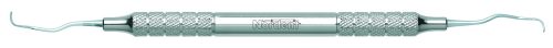 All mesial surfaces of bicuspids and molars. Terminal shank reach is 8 mm. Nordent standard Gracey curettes feature a blade face curve with a true radius that conforms to tooth anatomy better than any other brand. This means that Nordent standard Gracey curettes are easier to adapt, require fewer strokes, and reduce tissue trauma better than any other brand. Nordent standard Gracey curettes have a 1.1 mm terminal shank diameter and blades that are 0.9 mm wide and 4 mm long. Handle is Medium round, additional handle options are shown below.