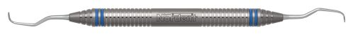 Combines a long-reach shank and a thin curette blade that is pointed like a scaler to provide easy adaptation to both supra and sub-gingival areas and excellent interproximal access. The mirror image tips have a 0.8 mm blade width set on 1 mm terminal shanks with a 12 mm reach. Featuring our DuraLite® ColorRings™ Handle, additional handle options are shown below.