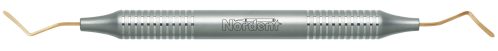 Mesial Distal Combination combines the mesial tip of the Gracey 12 and the distal Gracey 13 tip to allow completion of the facial or lingual sextant without changing instruments. Nordent standard Gracey curettes feature a blade face curve with a true radius that conforms to tooth anatomy better than any other brand. This means that Nordent standard Gracey curettes are easier to adapt, require fewer strokes, and reduce tissue trauma better than any other brand. Nordent standard Gracey curettes have a 1.1 mm terminal shank diameter and blades that are 0.9 mm wide and 4 mm long. Featuring our DuraLite® ColorRings™ Handle, additional handle options are shown below.