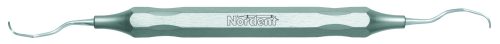 All distal surfaces of bicuspids and molars. Terminal shank reach is 7 mm. Nordent Rigid Gracey curettes feature a rigid shank and a longer reach blade and are well-suited to periodontal and surgical application. Nordent Rigid Gracey curettes have a 1.3 mm terminal shank diameter and blades that are 0.9 mm wide and 6 mm long. Featuring our DuraLite Round Handle, additional handle options are shown below.