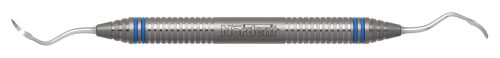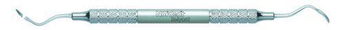 Large spoon end for stain removal with a sickle for supragingival scaling. Featuring our Relyant® Handle, additional handle options are shown below.