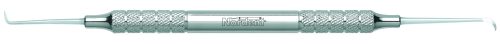 Combines a small Jacquette that has a 3.5 mm length and a small sickle that has a 1.2 mm blade that tapers to a point. The Goldman-Fox series of instruments includes universal curettes, Jacquettes, sickles and hoes. Featuring our DuraLite Round Handle, additional handle options are shown below.