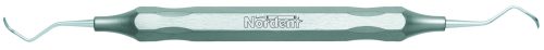 The McCall 13-14 universal curette is similar to the rigid version of the Barnhart 5-6. The McCall terminal shank is 1 mm shorter and the blade is elliptical in shape and features an accentuated curvature. The McCall 13S-14S has pointed tips as opposed to rounded toes. For better access around distal surfaces, there is the elliptical shaped blades of the McCall 17-18 or parallel blades of the 17S-18S.