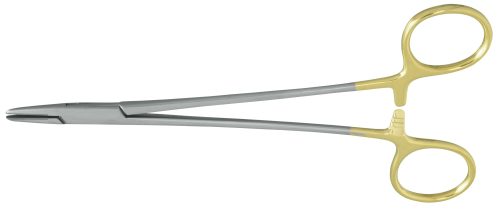 Castroviejo NH4388 Very fine serrations on narrow profile jaws with carbide inserts. Straight beaks, round Euro-style handle (5.5" / 140 mm).