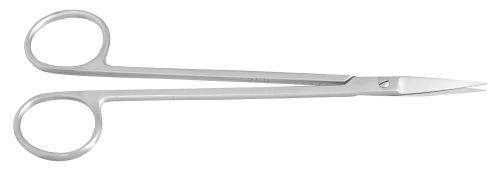 A unique handle curvature allows easy access to the tightest areas. One blade is Serrated to hold tissue when cutting. (5" / 130 mm)