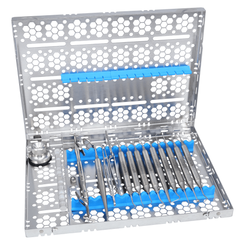 Large Cassette 8” W x 11” L x 1.25”H Available configurations: 0-16 instruments Increase Efficiency by optimizing organization for a smoother workflow Organize your kits efficiently with our secure Snap-In-Silicon™ rails Protect your instruments while also reducing the risk of sharps injuries