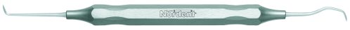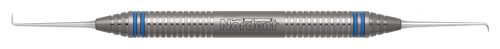 The blades are 5 mm long and taper to a point from a 1 mm width. The Goldman-Fox series of instruments includes universal curettes, Jacquettes, sickles and hoes. Featuring our DuraLite® ColorRings™ Handle, additional handle options are shown below.