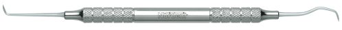 The blades are 5 mm long and taper to a point from a 1 mm width. The Goldman-Fox series of instruments includes universal curettes, Jacquettes, sickles and hoes. Featuring our DuraLite Hex Handle, additional handle options are shown below.