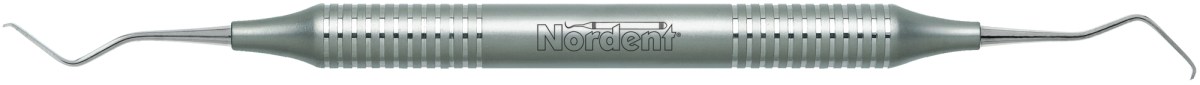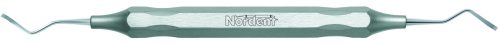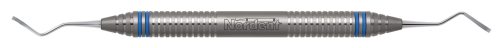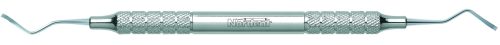 Large spoon end for stain removal with a sickle for supragingival scaling. Featuring our Relyant® Handle, additional handle options are shown below.