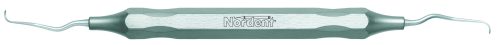All distal surfaces of bicuspids and molars. Nordent Mini Blade - Long Reach Gracey curettes have a shorter, narrower blade and an extended terminal shank that is 3 mm longer than standard. They feature our blade face curve with a true radius that conforms to tooth anatomy better than any other brand. This means that Nordent Gracey curettes are easier to adapt, require fewer strokes, and reduce tissue trauma better than any other brand. Nordent Mini Blade - Long Reach Gracey curettes have a 1 mm terminal shank diameter and blades that are 0.7 mm wide and 3 mm long. Featuring our Relyant® Handle, additional handle options are shown below.