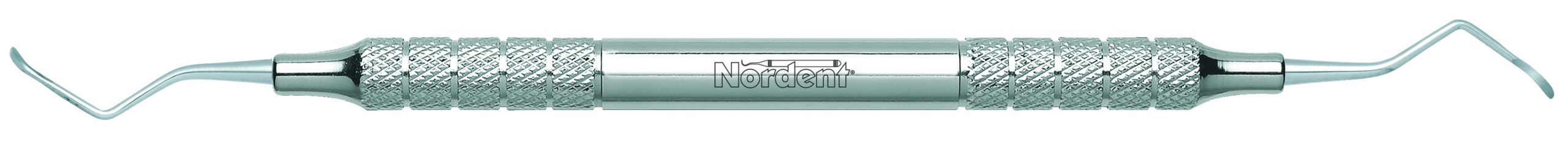 Columbia curettes have universal blades that have sharp cutting edges on both sides of the blade and a rounded toe. The terminal shank is 1.1 mm in diameter and 12 mm long with an elliptical blade shape that is 1.2 mm wide. Handle is Medium round, additional handle options are shown below.