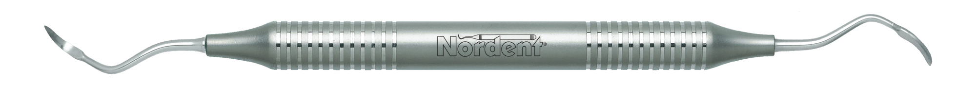 Mirror image blades that taper to a point from a 2 mm width. The terminal shank is set at 35° to the handle with a reach of 15 mm. Featuring our DuraLite Round Handle, additional handle options are shown below.