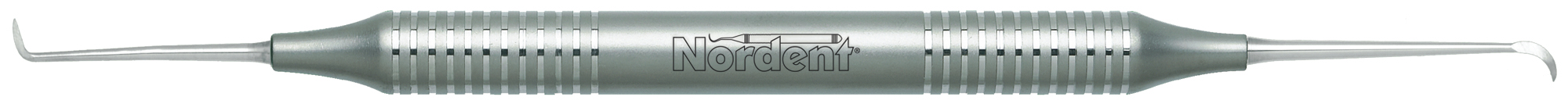 Combines a small Jacquette that has a 3.5 mm length and a small sickle that has a 1.2 mm blade that tapers to a point. The Goldman-Fox series of instruments includes universal curettes, Jacquettes, sickles and hoes. Featuring our DuraLite Round Handle, additional handle options are shown below.