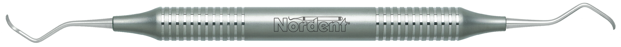 The terminal shank is 1.1 mm in diameter and 10 mm long. The blade width is 1 mm. The Goldman-Fox series of instruments includes universal curettes, Jacquettes, sickles and hoes. Featuring our DuraLite Round Handle, additional handle options are shown below.