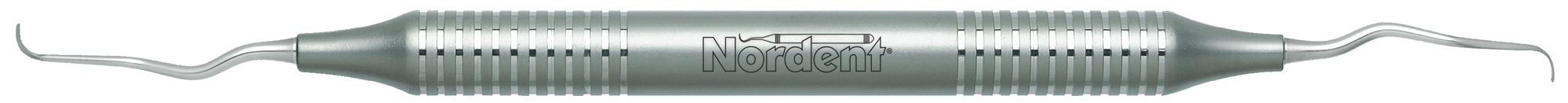 All distal surfaces of bicuspids and molars. Nordent Mini Blade – Long Reach Gracey curettes have a shorter, narrower blade and an extended terminal shank that is 3 mm longer than standard. They feature our blade face curve with a true radius that conforms to tooth anatomy better than any other brand. This means that Nordent Gracey curettes are easier to adapt, require fewer strokes, and reduce tissue trauma better than any other brand. Nordent Mini Blade – Long Reach Gracey curettes have a 1 mm terminal shank diameter and blades that are 0.7 mm wide and 3 mm long. Featuring our DuraLite Round Handle, additional handle options are shown below.