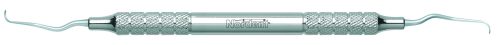 Modified version of the Mini Blade Long Reach Gracey 11-12 allows better access access and more comfortable hand and finger position for all distal surfaces of bicuspids and molars. Nordent long reach Gracey curettes have an extended terminal shank that is 3 mm longer than standard. They feature our standard blade face curve with a true radius that conforms to tooth anatomy better than any other brand. This means that Nordent standard Gracey curettes are easier to adapt, require fewer strokes, and reduce tissue trauma better than any other brand. Nordent standard Gracey curettes have a 1.1 mm terminal shank diameter and blades that are 0.9 mm wide and 4 mm long. Featuring our DuraLite® ColorRings™ Handle, additional handle options are shown below.