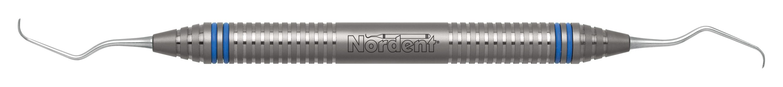 Short contra-angle for incisors and cuspids. Nordent long reach Gracey curettes have an extended terminal shank that is 3 mm longer than standard. They feature our standard blade face curve with a true radius that conforms to tooth anatomy better than any other brand. This means that Nordent standard Gracey curettes are easier to adapt, require fewer strokes, and reduce tissue trauma better than any other brand. Nordent standard Gracey curettes have a 1.1 mm terminal shank diameter and blades that are 0.9 mm wide and 4 mm long. Featuring our DuraLite® ColorRings™ Handle, additional handle options are shown below.