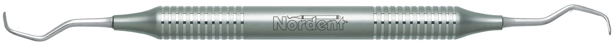 Short contra-angle for incisors and cuspids. Terminal shank reach is 11 mm. Nordent Rigid Gracey curettes feature a rigid shank and a longer reach blade and are well-suited to periodontal and surgical application. Nordent Rigid Gracey curettes have a 1.3 mm terminal shank diameter and blades that are 0.9 mm wide and 6 mm long. Featuring our DuraLite Round Handle, additional handle options are shown below.