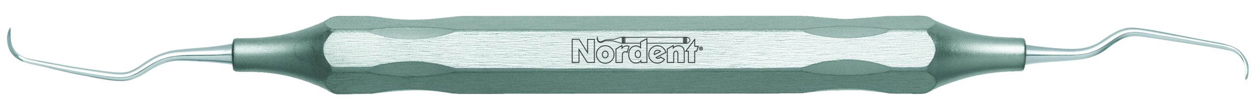 Medium shank and slight contra-angle for bicuspids and molars. Nordent Mini Blade – Long Reach Gracey curettes have a shorter, narrower blade and an extended terminal shank that is 3 mm longer than standard. They feature our blade face curve with a true radius that conforms to tooth anatomy better than any other brand. This means that Nordent Gracey curettes are easier to adapt, require fewer strokes, and reduce tissue trauma better than any other brand. Nordent Mini Blade – Long Reach Gracey curettes have a 1 mm terminal shank diameter and blades that are 0.7 mm wide and 3 mm long. Featuring our DuraLite Hex Handle, additional handle options are shown below.
