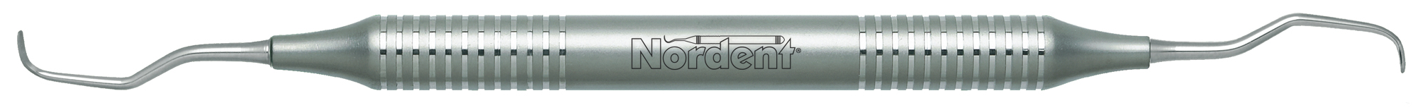 Medium shank and slight contra-angle for bicuspids and molars. Terminal shank reach is 14 mm. Nordent Rigid Gracey curettes feature a rigid shank and a longer reach blade and are well-suited to periodontal and surgical application. Nordent Rigid Gracey curettes have a 1.3 mm terminal shank diameter and blades that are 0.9 mm wide and 6 mm long. Featuring our DuraLite Round Handle, additional handle options are shown below.