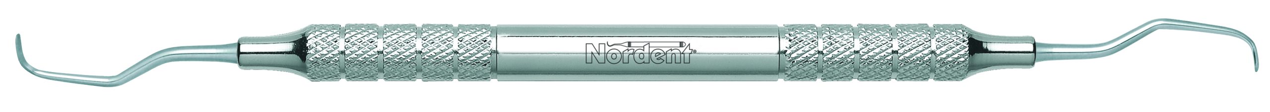 Medium shank and slight contra-angle for bicuspids and molars. Terminal shank reach is 14 mm. Nordent Rigid Gracey curettes feature a rigid shank and a longer reach blade and are well-suited to periodontal and surgical application. Nordent Rigid Gracey curettes have a 1.3 mm terminal shank diameter and blades that are 0.9 mm wide and 6 mm long. Handle is Medium round, additional handle options are shown below.