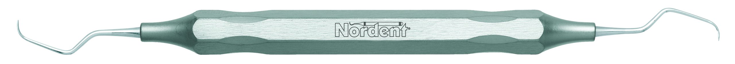Medium contra-angle for facial and lingual surfaces of bicuspids and molars. Terminal shank reach is 12 mm. Nordent standard Gracey curettes feature a blade face curve with a true radius that conforms to tooth anatomy better than any other brand. This means that Nordent standard Gracey curettes are easier to adapt, require fewer strokes, and reduce tissue trauma better than any other brand. Nordent standard Gracey curettes have a 1.1 mm terminal shank diameter and blades that are 0.9 mm wide and 4 mm long. Featuring our DuraLite Hex Handle, additional handle options are shown below.