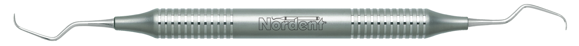 Medium contra-angle for facial and lingual surfaces of bicuspids and molars. Terminal shank reach is 12 mm. Nordent standard Gracey curettes feature a blade face curve with a true radius that conforms to tooth anatomy better than any other brand. This means that Nordent standard Gracey curettes are easier to adapt, require fewer strokes, and reduce tissue trauma better than any other brand. Nordent standard Gracey curettes have a 1.1 mm terminal shank diameter and blades that are 0.9 mm wide and 4 mm long. Featuring our DuraLite Round Handle, additional handle options are shown below.