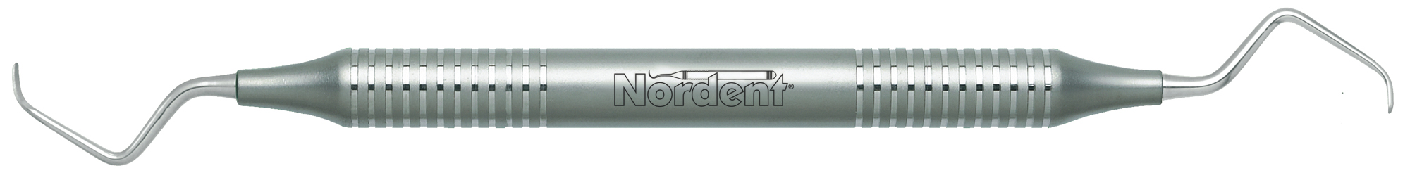 Long contra-angle for molars and less accessible root surfaces. Terminal shank reach is 12 mm. Nordent Rigid Gracey curettes feature a rigid shank and a longer reach blade and are well-suited to periodontal and surgical application. Nordent Rigid Gracey curettes have a 1.3 mm terminal shank diameter and blades that are 0.9 mm wide and 6 mm long. Featuring our DuraLite Round Handle, additional handle options are shown below.