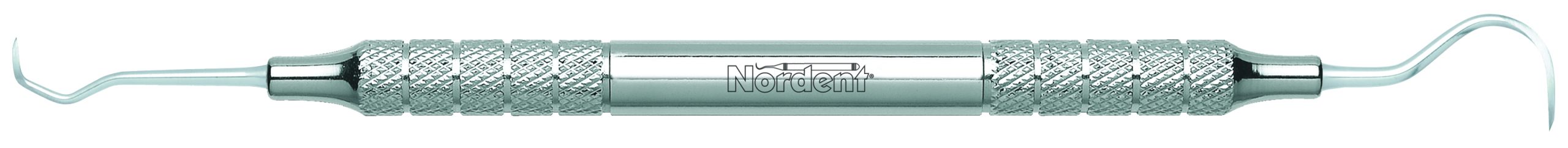 Combines a small size, straight blade jacquette that has a 0.9 mm blade width that tapers to a point with a long-reach Towner U15 sickle that has a blade width of 1 mm that tapers to a point. Also known as the U15-33. Handle is Medium round, additional handle options are shown below.