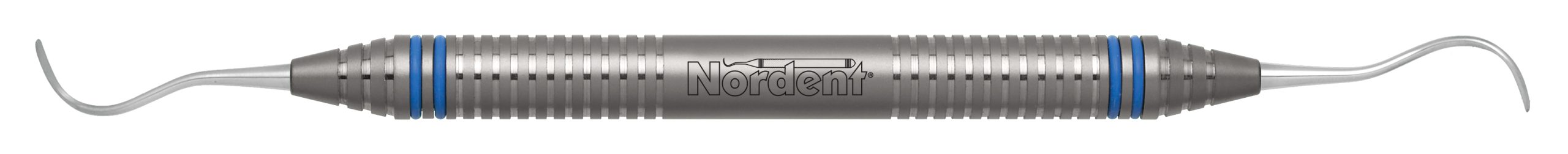 The shank curvature adapts easily to 2nd and 3rd molars. The straight-sided universal blade has a rounded toe and is 1 mm wide. McCall curettes have universal blades that have sharp cutting edges on both sides of the blade. Featuring our DuraLite® ColorRings™ Handle, additional handle options are shown below.