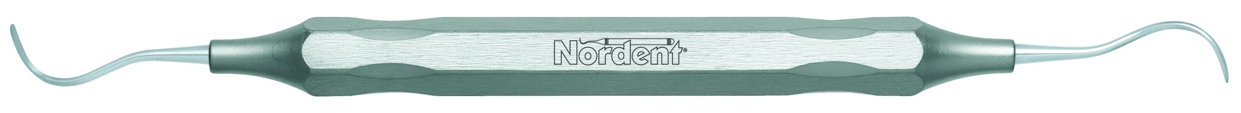 The shank curvature adapts easily to 2nd and 3rd molars. The straight-sided universal blade has a rounded toe and is 1 mm wide. McCall curettes have universal blades that have sharp cutting edges on both sides of the blade. Featuring our DuraLite Hex Handle, additional handle options are shown below.