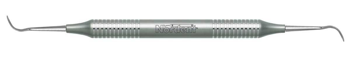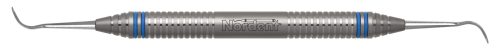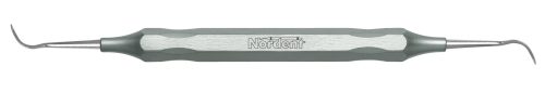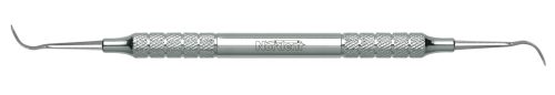 Both sickles have an identical moderate size, medium-reach length and blade widths of 0.8 mm that taper to a point. The tips have a 20° mirror image offset to allow better access to anteriors and premolars. Featuring our DuraLite Round Handle, additional handle options are shown below.