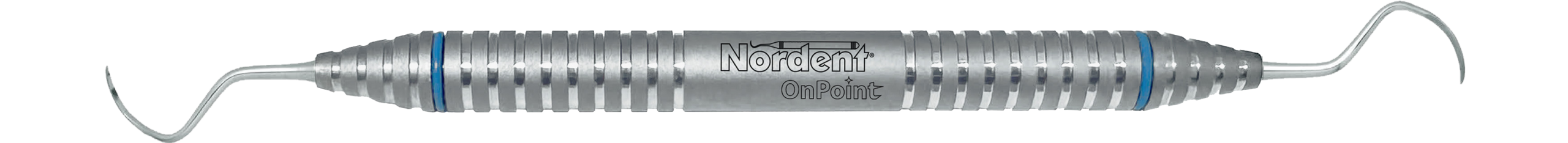 Mirror image blades on a long-reach terminal shank. The blades taper to a point from a 1.1 mm width and have a reach of 13 mm.
