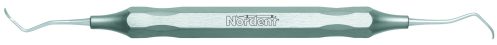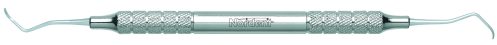 Mirror image universal curette with 0.8 mm blade width, a terminal shank set at 47° to the handle, and a 10 mm reach. Featuring our long-lasting UltraSteel™ edge and customizable ColorRings®