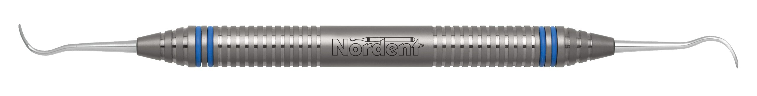 Younger-Good curettes feature a shank curvature that adapts easily to 2nd and 3rd molars. The elliptical blade shape has a rounded toe and is 1 mm wide. Featuring our DuraLite® ColorRings™ Handle, additional handle options are shown below.